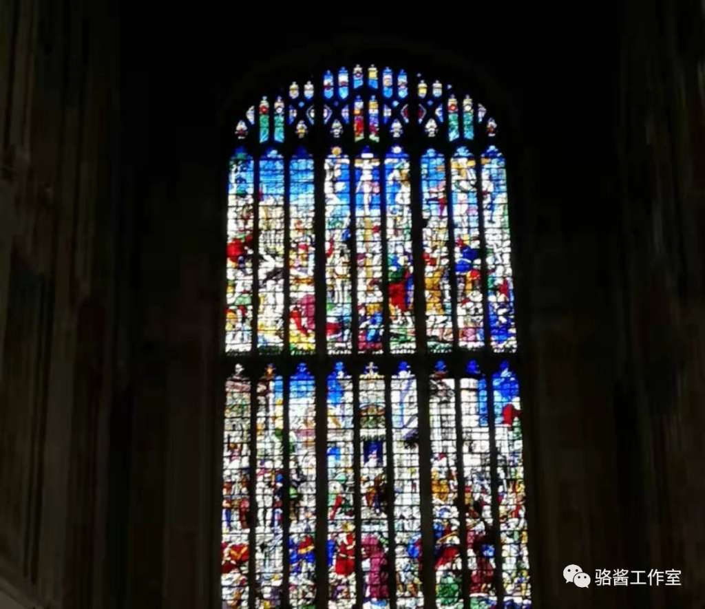 特别喜欢这些窗户上的花纹! 色彩斑斓的超精致啊!!! 这个窗户上, 用多彩的玻璃, 砌成了很多故事。 试想一下, 晴天, 阳光从玻璃窗上照射进来, 斑驳的光影, 如梦如幻; 夜晚, 透过花窗放射出去的彩光, 宛如星辰。 反正本骆就只看出来最上边的那个, 是耶稣受难的故事!