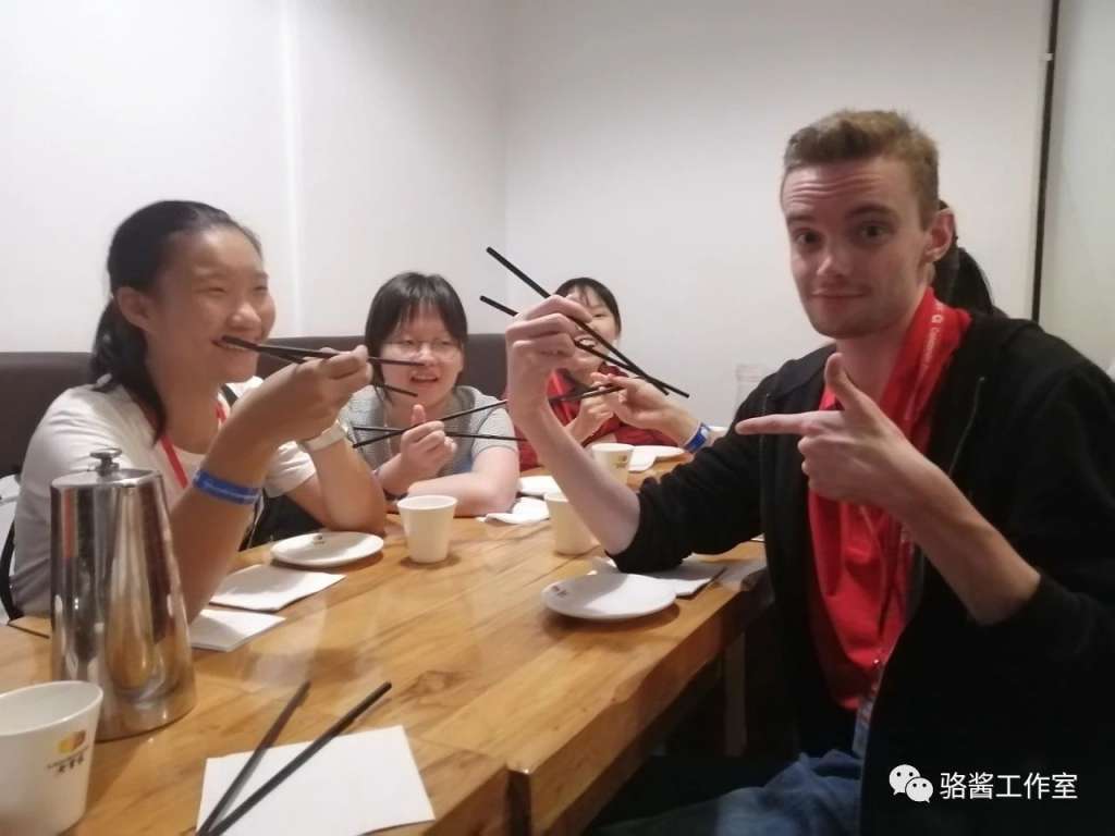 游学日记--教歪果仁用筷子发表时间:2019-09-27 21:06 英国游学DAY7||今天补漏吧 骆酱 今天, 我们上了和原来的老师、同学们的最后一节课 (因为有些人比我们早来一个星期, 所以他们要走了) 所以, 我们课堂的气氛 特别的…… 高涨 本骆还趁机收集了小哥哥小姐姐们照片 超激动怎么办 然后, 就没有然后了 下午什么的, 直接跳过…… 好的, 然后是晚上: 本骆好不容易鼓起勇气去玩排球了 然后, 大概是因为玩的太好(cai)了, 老师决定带我们玩瑜伽 这个比较适合我 然后, 就特别愉快的玩了十分钟不到的瑜伽 于是接下来的时间, 我们就一直缠着老师老师问 什么时候可以再去玩瑜伽 然而, 老师每次都说: wow!You want to play yoga!Cool!(激动的声音 表情夸张) But I do not have timetomorrow!(忧伤的声音) Mabey next time~ — It's ok. so bye! 好的, 现在是补漏时间 之前教我们的activities leader-Jack 怎么去用筷子吃东西 他真的学会了, 而且是光速啊! 真是机智