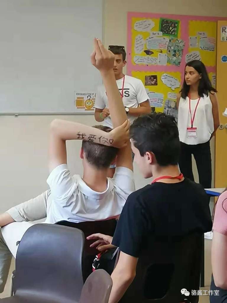 本骆特别高质量的 完成了这次的成果展示 获得了我们老师如“暴风雨般”的夸赞 还有一个特别有趣的成果展示 波兰小哥哥的手臂上是中文的“我爱你” 哈哈哈哈哈哈哈 事情是这样的 他们要汇报的课题是 与“纹身”有关的话题 然后小哥哥来演话剧, 说要纹个“我爱你” 然后这”我爱你“几个字, 如果没有看错的话, 是一位意大利女孩在表演的时候写上去的 后来问他们为啥要演这个 他们答 "because we like chinese!" 自豪ing~ 然后是毕业典礼